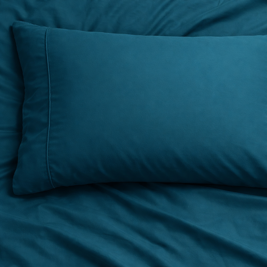 Kombiniere sie mit einer Bettdecke mit niedriger bis mittlerer Wärmestufe sowie einem atmungsaktiven Kissen, damit Feuchtigkeit durch alle Schichten entweichen kann und nicht nur im Oberstoff bleibt.