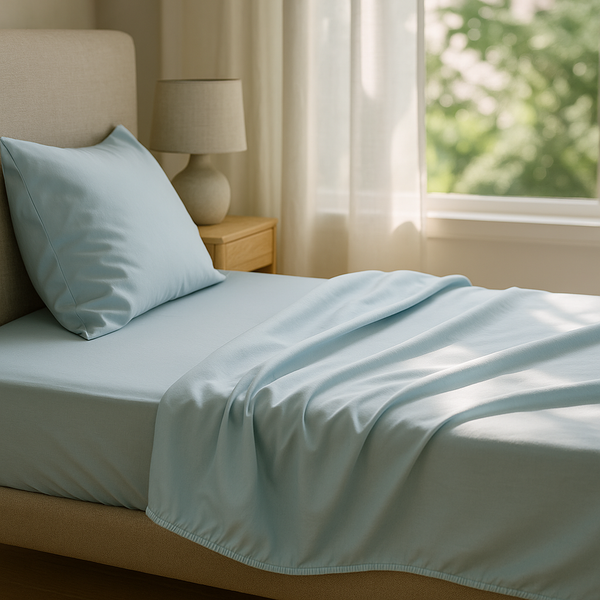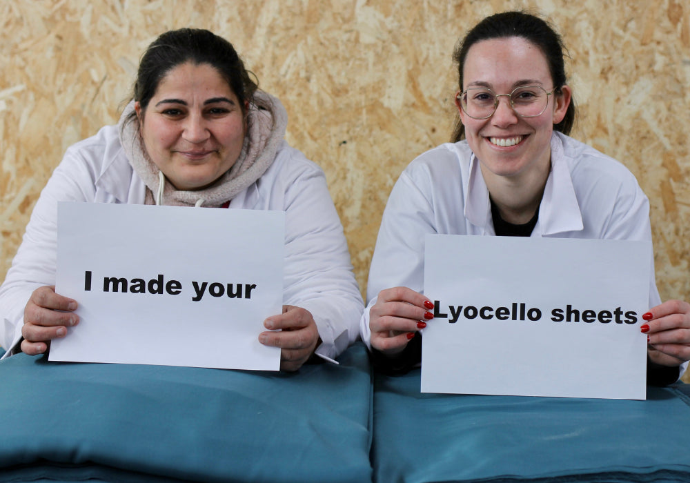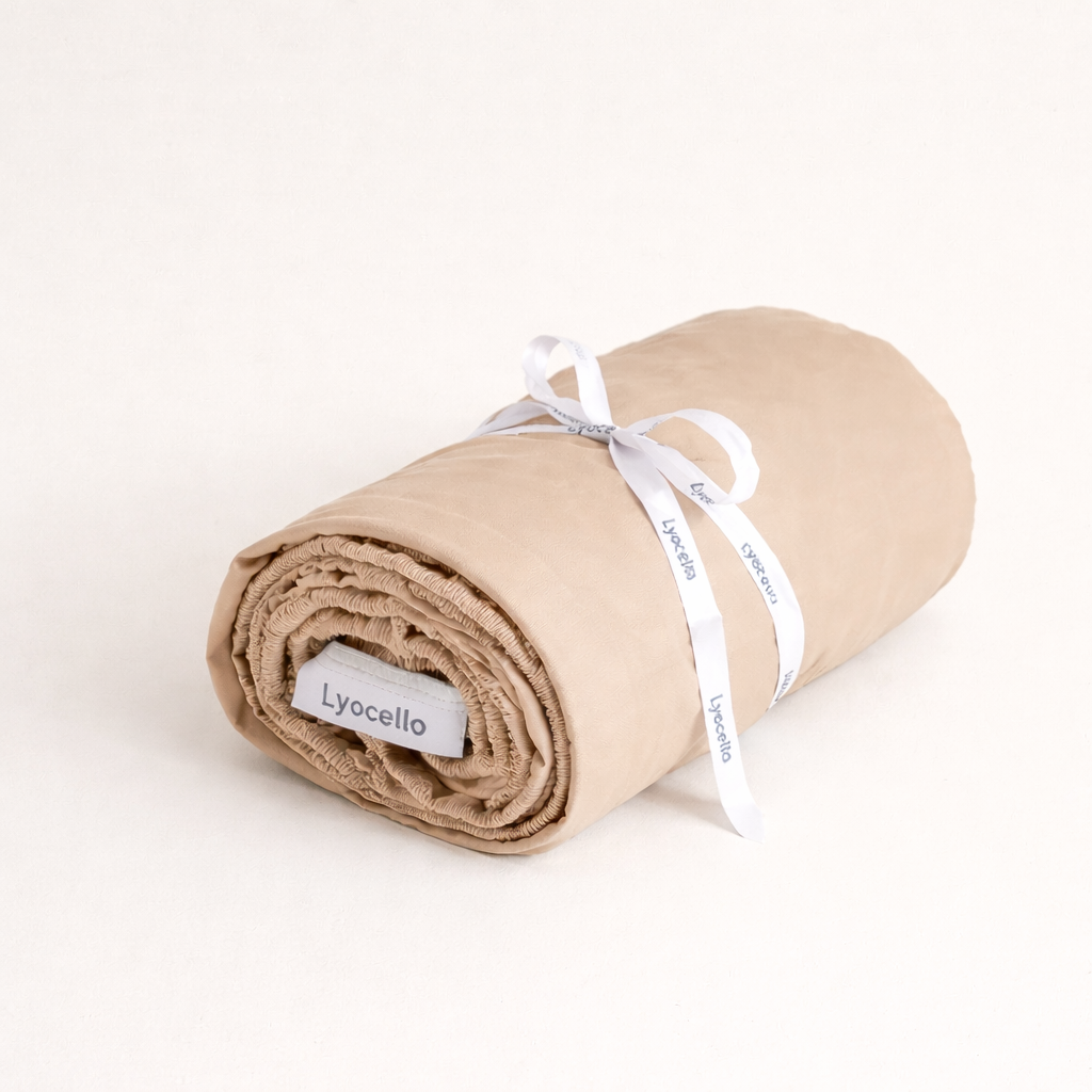 Wenn du nachts schwitzt, wähle einen leichten Bettbezug und ein Spannbettlaken aus 100 % Lyocell, idealerweise ohne synthetische Mischfasern.